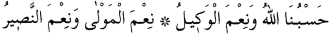 "Allah bize yeter; O ne güzel vekildir." Âl-i İmran Suresi, 3:173. "O ne güzel dost ve O ne güzel yardımcıdır." Enfal Suresi, 8:40.