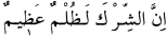 "Muhakkak ki, şirk pek büyük bir zulümdür." Lokman Süresi, 31:13.