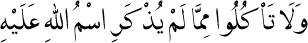 "Üzerine Allah’ın adı zikredilmeyen şeylerden yemeyin." En’âm Sûresi, 6:121.