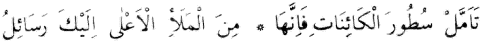Yani, eb’âd-ı vâsia-i âlemin sayfasında Nakkaş-ı Ezelînin yazdığı silsile-i hâdisatın satırlarına hikmet nazarıyla bak ve fikr-i hakikatle sarıl. Tâ ki mele-i âlâdan gelen selâsil-i resâil, seni âlâ-yı illiyyîn-i yakîne çıkarsın.