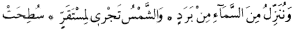2 "Gökteki dağ gibi bulutlardan Allah dolu taneleri indirir." Nur Sûresi, 24:43. "Güneş de onlar için bir delildir ki, kendisine tayin edilmiş bir yere doğru akıp gider." Yâsin Sûresi, 36:38. "Yayılmış." Gàşiye Sûresi, 88:20.