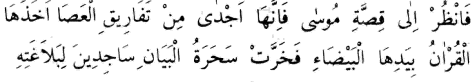 Evet, kıssa-i Mûsâ meşhur darb-ı meseldeki tefariku’l-asâdan daha nâfidir. Nasıl o asa ne kadar parçalansa yine bir işe yarar. Kıssa-i Mûsâ dahi öyledir. Bu hâsiyetine binaendir ki, Kur’ân yed-i beyza-i mu’cizü’l-beyanıyla o kıssayı aldı ve suver-i müteaddidede gösterdi. Herbir ciheti hüsn-ü istimâl etti. Fenn-i beyanın seharası, belâgatına secde ber zemin-i hayret ve muhabbet ettiler.