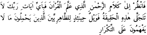 Kur’ân’ı öğreten Rahmân’ın kelâmına bir bak: Rabbinin âyetlerinden hangi biri var ki, bu hakikat onda tecellî etmesin? Yazıklar olsun o zahirperestlere ki, anlamadıkları şeyi tekrara hamlederler.