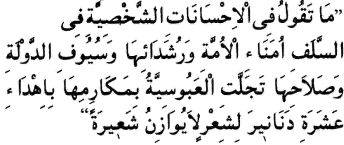 Ümmetin emin ve olgun kişileri, devletin de kılıç ve salâhı olan selefin, bir arpa tanesi etmeyen bir şiire on dinar bağışta bulunmak gibi ihsanat-ı şahsiyelerinde ortaya çıkan hazin hale ne dersin?