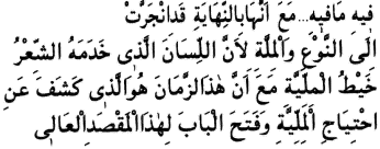 Şu ibare, kendine hediye olunan ve mevzuun fabrikasından çıkan yerli bir üslûbu giymiştir.