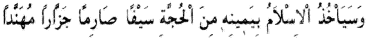 * Sağlam, keskin ve bilenmiş hüccetten kılıcı sağ eline ve hürriyeti de, parlak renkli Arap atının dizgini gibi sol eline alacak olan İslâm, bağ ve bahçelerimizin kökünü kurutan istibdadın başını parçalayacaktır.