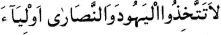 "Yahudileri ve Hıristiyanları dost edinmeyin." Mâide Sûresi, 5:51.