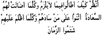 Vaktâ ki o mânâ-yı istibdadı, def’i muhal bir belâ-yı semavî zannettiler; zamana hücum ve dehrin başına tokat ve feleğin bağrına oklar atmaya başladılar. Çünkü bir kaide-i mukarreredir: Birşey cüz-i ihtiyarînin dairesinden ve cüz’iyetten çıkıp külliyet dairesine girse, veyahut bihasebil’âde def’i muhal olsa, zamana isnat edilir Ve kabahat dehre atılır. Taşlar feleğin kubbesine vurulur. Eğer iyi temâşâ etsen göreceksin ki, feleğe atılan taşlar, döndüğü vakit bir yeis olarak kalbde tahaccür eder.