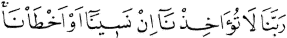 Ey Rabbimiz! Unutur veya hatâya düşer de bir kusur işlersek bizi onunla hesaba çekme. Bakara Sûresi, 2:286.