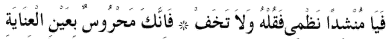 1 Ey benim şiirimi okuyan, onu söyle ve korkma! Çünkü, hiç şürhesiz sen inayet gözüyle korunmaktasın.