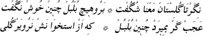 Meâli: Yani, "Gel, bak, güller bağı şeklinde hakikat gülleri açılmış. Böyle hakikat bahçesinde hiçbir bülbül, böyle şirin, hoş nağme etmemiştir. Nasıl oluyor ki, böyle bir bülbül öldükten sonra onun kemiklerinden güller açılmasın."
