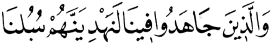 1 Bizim uğrumuzda cihad edenlere Biz yollarımızı gösteririz. Muhakkak ki Allah iyilik eden ve iyi kullukta bulunanlarla beraberdir. Ankebut Sûresi, 29:69.