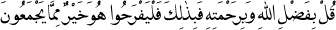 "Onlara söyle ki: Allah’ın lütfuyla ve rahmetiyle-ancak bununla ferahlansınlar. Bu, onların dünyada toplayıp durduklarından daha hayırlıdır." Yûnus Sûresi, 10:58.