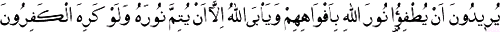 Allah’ın nûrunu üflemekle söndürmek isterler. Allah ise nûrunu tamamlamaktan başka birşeye râzı olmaz¦kâfirler isterse hoşlanmasınlar. Tevbe Sûresi, 9:32.