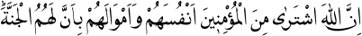Allah, müminlerden canlarını ve mallarını, karşılığında onlara Cennet vermek sûretiyle satın almıştır. (Tevbe Sûresi: 111.)