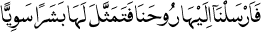 1 Derken ona Cebrâil’i gönderdik; o da aynen bir beşer sûretinde ona görünüverdi. (Meryem Sûresi: 17.)