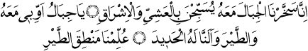 "Ey dağlar ve kuşlar, onunla beraber tesbih edin" dedik. Demiri de onun için yumuşattık. (Sebe’ Sûresi: 10.)