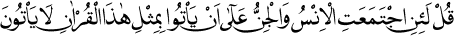 De ki: And olsun, eğer bu Kur’ân’ın benzerini getirmek için insanlar ve cinler bir araya toplanıp da hepsi birbirine yardımcı olsalar, yine de onun benzerini getiremezler. (İsrâ Sûresi: 88.)