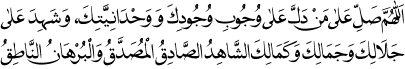 Allah’ım! Senin vücûb-u vücuduna ve Vahdâniyetine delâlet, Senin Celâline, Cemâline ve Kemâline şehâdet eden; gördüğünü önce kendisi tasdik eden şâhid-i sâdık ve tahkik edici bürhan-ı nâtık, Peygamber ve resûllerin efendisi ve onların icmâ ve tasdik ve mucizelerinin sırrını taşıyan, evliyâ ve sıddîkların önderi ve onların da ittifak ve tahkik ve kerâmetlerinin sırrını kendinde bulunduran, apaçık mu’cizelerin, zâhir hârikaların, muhakkak, kesin ve kendisini doğrulayan delillerin sahibi; zâtında kıymetli hasletlerin, vazifesinde yüce huyların, şeriatında yüksek seciyelerin mâliki-ki, bütün bunlar, mükemmel ve kendisini hilâf-ı hakikat konuşmaktan tenzih ederler-Kur’ân’ı indiren Allah’ın, indirilen Kurân’ın ve kendisine Kur’ân inen Zâtın icmâıyla, Rabbânî vahyin iniş yeri, âlem-i gayb ve melekûtu gezip dolaşan, ruhları müşâhede edip meleklerle arkadaşlık eden, şahıs, nev ve cinsiyle kâinattaki kemâlâtın fihristesi, yaratılış ağacının en nurlu meyvesi, hakkın kandili, hakikatin bürhanı, rahmetin timsâli, muhabbetin misâli, kâinat tılsımının keşşâfı, Rubûbiyet saltanatının dellâlı, şahsiyet-i mâneviyesinin ulviyetiyle kâinatın yaratılışından âlemin Yaratıcısının maksadı olduğunu gösteren, kanunlarının genişliği ve kuvvetiyle kâinatı düzene koyan Zâtın nizâmı ve kâinatın Yaratıcısının kanunu olduğunu gösteren Şeriatın sahibi, (Evet, kâinatı bu eksiksiz nizam ile tanzim eden Zâttır ki, bu Dini, bu en güzel ve mükemmel nizâmıyla ortaya koymuştur.) biz insanların efendisi ve biz mü’minlere imân yolunu gösteren, Abdullah bin Abdulmuttalib’in oğlu Muhammed’e salât eyle. Ona yer ve gökler durdukça en üstün salâvâtlar ve en mükemmel selâmlar olsun. İşte, bu gördüğünü önce kendisi tasdik eden şâhid-i sâdık şahitlerin huzurunda, asırların ve ülkelerin arkasından, bütün kuvvetiyle gáyet ciddiyetle, nihayetsiz güveni kuvvet-i itminânıyla ve kemâl-i imânıyla, yüksek bir ses ile şöyle nidâ edip bildiriyor: "Allah’tan başka hiçbir ilâh bulunmadığına şehâdet ederim. O tektir; hiçbir ortağı yoktur."