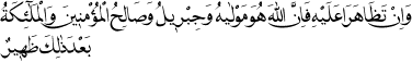 3 Eğer ona karşı birbirinize arka çıkarsanız, şüphesiz ki onun dostu Allah’tır, Cebrâil’dir ve sâlih mü’minlerdir. Üstelik melekler de onun yardımcısıdır. (Tahrîm Sûresi: 4.)