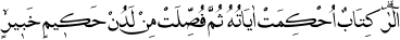 1 Elif lâm râ. Bu öyle bir kitaptır ki, her işi hikmetle yapan ve herşeyden hakkıyla haberdar olan Allah tarafından âyetleri sağlam şekilde tanzim edilmiş, sonra tafsilâtıyla açıklanmıştır. (Hûd Sûresi: 1)
