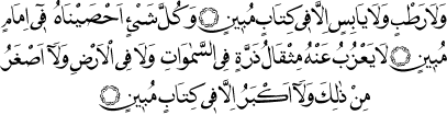 Ne göklerde ve ne de yerde zerre kadar birşey Ondan uzak kalamaz; bundan küçük veya büyük ne varsa, hepsi apaçık bir kitapta yazılmıştır. (Sebe’ Sûresi: 3.)