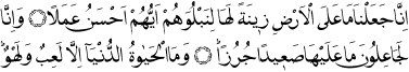 Yeryüzünde ne varsa Biz dünya için bir süs olarak yarattık ki, insanlardan hangisi daha güzel işler yapacak diye onları imtihan edelim. • Onun üzerindeki herşeyi Biz elbette kupkuru bir toprak haline getireceğiz. (Kehf Sûresi: 7-8.)