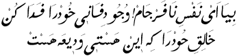 Mâdem hakikat böyledir; gel, ey hayata çok müştak ve ömre çok tâlip ve dünyaya çok âşık ve hadsiz emellerle ve elemlerle mübtelâ bedbaht nefsim! Uyan, aklını başına al. Nasıl ki yıldız böceği, kendi ışıkçığına itimad eder, gecenin hadsiz zulümâtında kalır; bal arısı kendine güvenmediği için gündüzün güneşini bulur, bütün dostları olan çiçekleri, güneşin ziyâsıyla yaldızlanmış müşâhede eder; öyle de, kendine, vücuduna ve enâniyetine dayansan, yıldızböceği gibi olursun. Eğer sen, fânî vücudunu, o vücudu sana veren Hàlıkın yolunda fedâ etsen, bal arısı gibi olursun, hadsiz bir nur-u vücud bulursun. Hem, fedâ et; çünkü, şu vücud sende vedîa ve emânettir.