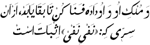 Hem Onun mülküdür, hem O vermiştir. Öyle ise, minnet etmeyerek ve çekinmeyerek fenâ et, fedâ et; tâ bekà bulsun. Çünkü, nefy-i nefiy ispattır. Yani, yok, yok ise, o vardır; yok, yok olsa, var olur.
