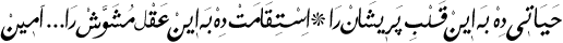 2 Ey Hayy ve Kayyûm olan! Hayy ve Kayyûm isimlerin hürmetine, bu perişan kalbe bir hayat ver, bu müşevveş akla doğru yolu göster. âmin.