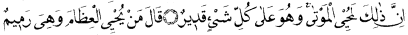 Dedi ki: "Çürümüş kemikleri kim diriltecek?" • De ki: Onu ilk önce kim yaratmışsa tekrar O diriltecek. O herşeyin yaratılışını hakkıyla bilendir. (Yâsin Sûresi: 78-79.)