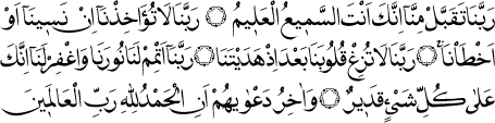3 Ey Rabbimiz! Bu hizmetimizi kabul buyur. Herşeyi hakkıyla işiten de, herşeyi hakkıyla bilen de ancak Sensin (Bakara Sûresi: 127.)