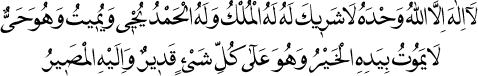 2 Allah’tan başka hiçbir ilâh yoktur; O birdir. Allah bir olur; ortağı yoktur. Mülk Onundur. Ezelden ebede her türlü hamd ve övgü, şükür ve minnet Ona mahsustur ve Ona lâyıktır. Hayatı veren ve devam ettiren yine Odur. Ölümü de yaratan ve bâkî âleme alan Odur. O ezelî ve ebedî hayat sahibidir. Her hayır Onun elindedir; yapılan her hayrı da kaydeder ve karşılığını verir. Herşeye gücü yeter ve hiçbir şey Ona ağır gelmez. Dönüş yalnız Onadır. (Buhârî, Ezan: 155, Teheccüd: 21; Müslim, Zikir: 28, 30; Ebû Dâvud, Vitr: 24.)