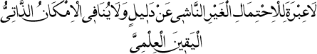 Yani, "Bir delilden, bir emâreden neş’et etmeyen bir ihtimâlin ehemmiyeti yok; katî ilme şek katmaz, yakîn-i hükmîyi sarsmaz." Meselâ, zâtında Barla Denizi (yani Eğridir Gölü), imkân ve ihtimâl var ki, pekmez olsun, yağa inkılâb etmiş olsun. Fakat, mâdem bir emâreden, o imkân ve ihtimâl neş’et etmiyor; onun vücuduna ve su olduğuna, katî ilmimize tesir etmez, şek ve vesvese vermez.