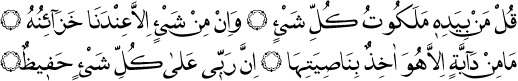 Hiçbir canlı yoktur ki, Allah onu alnından tutup kudretine boyun eğdirmiş olmasın. Muhakkak ki, Rabbim her şeye hakkıyla koruyucudur ve yapılan herşeyi kaydeder. (Hûd Suresi: 56-57)