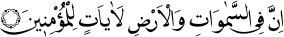 Muhakkak ki, göklerde ve yerde müminler için Allah’ın varlık ve birliğine, kudret ve rahmetine işaret eden deliller vardır. (Casiye Suresi: 3.)