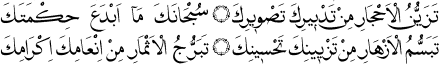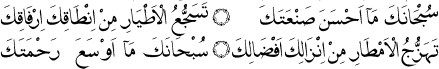 Sen her türlü noksan sıfattan münezzehsin; senin sanatın ne güzeldir. Kuşların ahenkle cıvıldaşmaları senen onları konuşturman ve birbirlerine karşı şefkatli kılman iledir.
