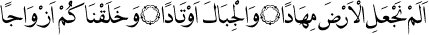 1 Yeryüzünü bir döşek, • dağları birer kazık yapmadık mı? • Sizi de çift çift yarattık. (Nebe’ Sûresi: 6-8.)