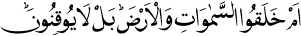 2 Yoksa gökleri ve yeri onlar mı yarattı? Doğrusu onların düşünüp imân etmeye niyetleri yoktur. (Tûr Sûresi: 36.)