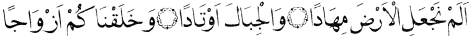 2 Yeryüzünü bir döşek, • dağları birer kazık yapmadık mı? • Sizi de çift çift yaratmadık mı? (Nebe’ Sûresi: 6-8.)