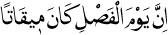 3 Şüphesiz, hüküm günü belirlenmiş bir vakittir. (Nebe’ Sûresi: 17.)