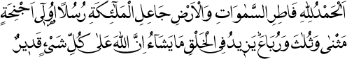 1 Ezelden ebede her türlü hamd ve övgü, şükür ve minnet o Allah’a mahsustur ki, gökleri ve yeri yoktan yaratmış, melekleri de ikişer, üçer, dörder kanatlı elçiler kılmıştır. O, yarattıkları için neyi dilerse onu arttırır. Muhakkak ki Allah herşeye hakkıyla kàdirdir. (Fâtır Sûresi: 1.)