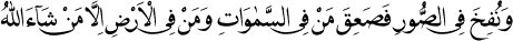 7 Sûra üfürülür. Ve Allah’ın dilediklerinden başka göklerde kim var, yerde kim varsa düşüp ölür. Sonra bir daha Sûra üflenir. Ve onlar kabirlerinden kalkıp bakışırlar. (Zümer Sûresi: 68.)