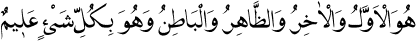 3 O Evveldir; başlangıcı olmadığı gibi, bütün varlıkların başlangıcı da Onun ilim ve kudretine bağlıdır. O Ahirdir; sonu olmadığı gibi bütün varlıkların neticesi Ona bakar ve dönüşü Onadır. O Zâhirdir; varlık ve birliğinin delilleri her şeyde apaçık görünür ve bütün varlıklar dış görünüşleri ve sanatlı yapılışlarıyla Onun kudret ve sanatına şâhidlik eder. O Bâtındır; her şeyin hakikatine vâkıftır ve her şeyin içyüzü Onun kudret ve hikmetine şâhidlik eder. O her şeyi hakkıyla bilendir. (Hadîd Sûresi: 3.)