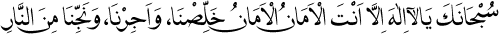 2 Sen aczden ve şerikten münezzeh ve mukaddessin. Senden başka ilâh yok ki bize imdat etsin. El-aman, el-aman! Bizi azap ateşinden ve Cehennemden halâs et, kurtar ve bize necat ver .