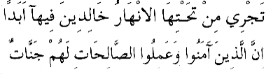 1 İmân eden ve güzel işler yapanlar için ise, altından ırmaklar akan Cennetler vardır. Bu ise pek büyük bir kurtuluştur." Bürûc Sûresi, 85:11.