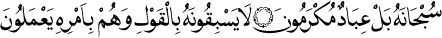 1 O bundan [evlat edinmekten] münezzehtir. Hayır, onların evlat dedikleri, Allah’ın ikramda bulunduğu kullardır. • Allah emretmedikçe onlar bir söz söylemezler; ancak Onun emriyle hareket ederler. (Enbiyâ Sûresi: 26-27.)