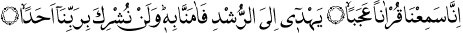 3 Biz, doğru yola ileten hârikulâde bir Kur’ân dinledik ve ona imân ettik. Biz Rabbimize hiç kimseyi ortak koşmayacağız. (Cin Sûresi: 1-2.)