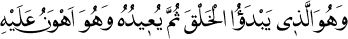 * Mahlûkatı önce yaratan, sonra tekrar diriltecek olan Odur ki, bu Ona daha kolaydır. (Rum Sûresi: 27.)
