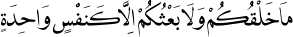 Sizin yaratılmanız da, diriltilmeniz de, tek bir kişinin yaratılıp diriltilmesi gibidir. (Lokman Sûresi: 28.)